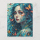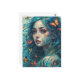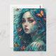 A woman with flowing, aqua-coloured hair is surrounded by numerous colourful butterflies, adding a sense of whimsy and magic to the scene. Her expression is serene yet captivating, harmonising with the vibrant butterflies fluttering around her.