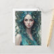 A woman with flowing blue hair is surrounded by butterflies and leaves, creating a mystical and ethereal atmosphere. Her serene expression and the vibrant colours convey a sense of harmony with nature.