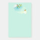 4x6 sticky notes. An abstract styles designwith circles and swirly shapes. The colour is a soothing summery green, turquoise and yellow. A couple of orange and yellow butterflies hovering around some delicate flowering blossoms with green leaves and brown branches. Has a fresh, delighful, magical look to it.