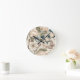 Butterflies and flowers pastel round clock