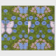 Butterflies and flowers symmetry, blue and pink wrapping paper