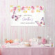 Adorn your baby shower with these charming custom banners, beautifully embellished with butterflies and florals in soft hues of purple, pink, peach, orange, and lavender. Easily personalise your banner using the provided template fields to add your unique text. These banners are a delightful addition to any "Butterflies and Lullabies" themed shower, perfect for celebrating the upcoming arrival of a little girl. Explore more enchanting girl baby shower ideas and decorations at www.zazzle.com/dotellabelle.