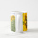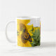 2 different images one on the right side and one on the left side of Monarch butterflies on sunflowers made up this coffee mug.