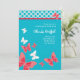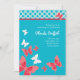 Trendy bridal shower invitation. Features butterflies in white and coral with a turquoise background. Fun and young design, perfect for a chic bride. Modern and elegant. Add your own wording. Can also be customised for a birthday party.