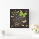 Butterflies in warm earth tones wall clock. Green, brown, cream.