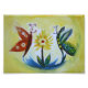 Red butterfly and blue green butterfly , flower painting. Naive, children art. Spring painting.Yellow background.