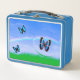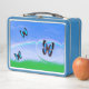 This is a standard metal lunchbox that appears to work just fine. We designed this box ourselves with an uploaded photo and custom text on the front and back. It looks absolutely beautiful except the front of the lunchbox is not centered like it shows in the photo. The print borders don't align with the inset flat part of the box where the preview photo online showed it perfectly centered in there. The back looks nice and centered though.