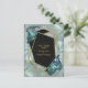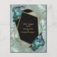 Nature springs to life in the new Butterfly of Paradise collection. Shimmering tropical splash in blues, turquoise and blue-green leaves on a textured black pattern with colourful butterflies. Customisation card design combined with a geometric gold frame for a wedding theme