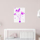 A beautiful desgin of butterflies done in purples and pinks coming out of a flower surrounded by stars on a print