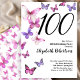 Butterfly 100th Birthday Invitation Pink /Purple