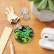 Flowers, a butterfly and leaves are glowing in this colourful painting that has been digitally altered.