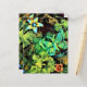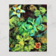 Flowers, a butterfly and leaves are glowing in this colourful painting that has been digitally altered.