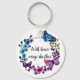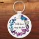 Butterfly and Flowers Wreath and custom quote Key Ring