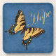 This set of 6 cork coasters has a blue faux embossed scroll background with a large blue, orange, tan and brown painted butterfly on it with the word Hope in an elegant cursive font.