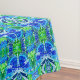 Tablecloth in a a digital batik pattern of large butterflies on an ornate, arabesque medallion background, in shades of cobalt blue, turquoise and jade green