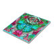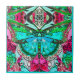 Ceramic tile in a digital batik large butterfly on an ornate, arabesque medallion background, in shades of turquoise and deep rose pink