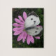 This awesome puzzle features a photograph of a Large White Butterfly, also known as a Cabbage White Butterfly, sitting on a beautiful purplish pink coloured African Daisy flower. The butterfly has its wings open revealing its beautiful markings.
