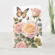 A beautiful yellow butterfly flutters over lush pink and cream roses on this sweet birthday card.