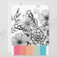 Delve into the world of colouring with our sophisticated, large-format colouring card, measuring 6.5" x 8.75", specially designed for adult women who appreciate both creativity and relaxation. This card features exquisitely detailed butterfly line art, complemented by a carefully selected colour palette guide that simplifies your choices and enhances your colouring experience. The rich shades of cherry red, orange, green, and turquoise breathe life into each butterfly and flower, transforming them into captivating masterpieces. Access watercolor pencil techniques through the QR code on the back.
