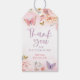 Thank guests for fluttering by your baby shower with our watercolor pink and purple butterfly baby shower thank you tags! These whimsical tags will add the perfect touch to your butterfly-themed baby shower. Featuring a floral butterfly design perfect for a new mum to be. Plus, personalise them with your name for a special, customised touch. 🦋🌸👶