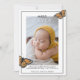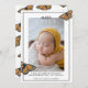 Celebrate and announce your biggest news with these beautiful butterfly cards! Share your happy news with family and friends and show off your style! Card features art of a Monarch butterfly fluttering lovingly around a portrait photo of your sweet new baby! With a border in black and classic text, these timeless cards are elegant and contemporary. Text overlay reads, "meet (baby's name)" followed by space to customise with your baby's birth stats, or any information you would like. Backside features one more portrait photo, because who can possibly only choose one picture of their adorable, precious baby? The butterfly art from the front is patterned on the back for a cohesive theme.