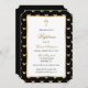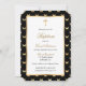 Elegant black and gold baptism invitation featuring a butterfly pattern. The gold foil is only simulated in the artwork.