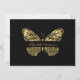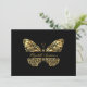 An elegant black background decorated with a faux gold butterfly. Personalise and add your name on the front. Back: Templates for Your name, title, phone number, mail and website address, QR-code.