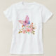 This nature-lover’s dream tee features a vibrant pink butterfly dancing above a bouquet of blooming florals and lush greenery. Delicate orange blossoms, soft pink petals, and a curious little bee bring the garden to life—right on your chest.