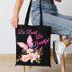 This striking black tote features a radiant pink butterfly soaring above a bouquet of soft blossoms and earthy leaves, crowned with the empowering message: Be Bold Be Beautiful.