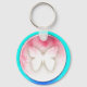 Butterfly Bubbles is a digital art design with pink and white fire, bubbles in a circle with a cut out butterfly shape and glowing light blue outer edge.