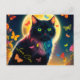 Butterfly cat glowing insect starry night animal postcard