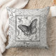 Decorative pillow with the author's design of a butterfly and a pattern in gray colors on a white background