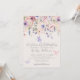 Both the front and back feature a soft ivory background, creating a warm and elegant base for the design. The top of the invitation showcases a delicate arrangement of watercolor wildflowers and greenery, with pink and purple butterflies fluttering gracefully across the florals. The color palette includes soft blush pinks, dusty rose, lilac, lavender, violet, and fresh greens for a dreamy, romantic look.