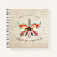 Pretty butterfly fork with aged background on this personal cookbook notebook, perfect for you keepsake recipe collection.