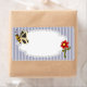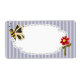 This label features a colourful cartoon butterfly and a big red flower on a blue striped background. Click on the Customise It button to add your own text. Can be used as a gardening label, canning label, bookplate label, shipping label, gift tag, party favour and more.
