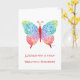 The butterfly holds many symbolic meanings, one of which is that of transformation and re-creation. Bella's morphing colors provides inspiration for a number of occassions and phrases. Originally hand painted in watercolor using a unique floral mosaic pattern, let Bella add a smile to your day everyday. Customize this card.