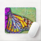 Butterfly on a flower with the word Joy. The Butterfly has a stained glass look to it