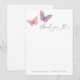 Butterfly Kisses thank you card featuring fluttering purple and pink butterflies and gold dots. Room on the card to write in your own message.