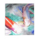 With an original art design by artist Sacha Grossel from a watercolour painting of two Butterfly Koi ornamental fish swimming in a serene pond. The fish are orange, blue and purple and the background water colour is turquoise. This original Oriental, Japanese art design is completely unique and one of a kind.
