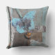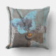 Butterfly mixed media art shown on throw pillow. Soft blues and creams with a butterfly and dream stamped heart artwork. Design by Jenn's Emporium.