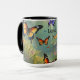Pretty Butterfly Mug in a butterfly haven with boulders flowers and mist. The name on the mug can be changed. The design was made with AI, and edited with photo software.