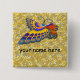This pin on name badge features colourful butterfly art on a gold and grey patterned background. Useful for any event but also as permanent name tags for gardening club meetings. (helpful hint: Collect them at the end of each meeting)