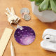 Sparkling, lavender-coloured butterflies burst out of the centre of a bright nebula that's in hues of pinks and purples. The deep purple space and glittering stars add even more to this fantasy.