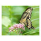 A beautiful male tiger swallowtail butterfly is perched and feeding on a marsh milkweed blossom.