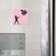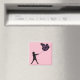 Butterfly on a Leash magnet. A minimalist vector design featuring a little girl tugging a black and purple butterfly on a leash. A cute gift for fans of absurdism, minimalist vector art, and pop surrealism.