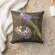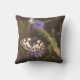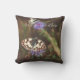 Throw Pillow featuring vintage style photo in warm tones. Beautiful black and white butterflies and blue flowers on dark brown background. Add a charming summer accent to your home decor!