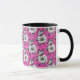Pink Background Black and White Butterfly on Flower seamless repeat pattern Design