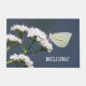 Lovely photo of a white butterfly resting on white flowers, is featured on this door mat. With a message of "Welcome", this door mat is a great way to greet visitors. Sturdy latex action backing allows for a non-slip grip. This mat resists fading, mould and mildew and is 24"w x 36"l, decorated in the USA.