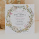 A little butterfly is on her way! This boho baby shower invitation features a watercolor wreath of pampas grass, florals and butterflies. Personalise with your information or click "Click to customise further" to edit font styles, size and colours.