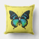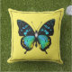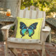 This outdoor accent throw pillow is shown with a lovely garden butterfly print design.